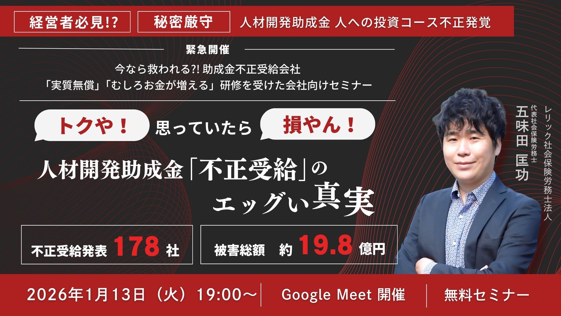 弁護士河瀬 季 モノリス法律事務所 代表弁護士 社会保険労務士 五味田 匡功 レリック社会保険労務士法人 代表社会保険労務士